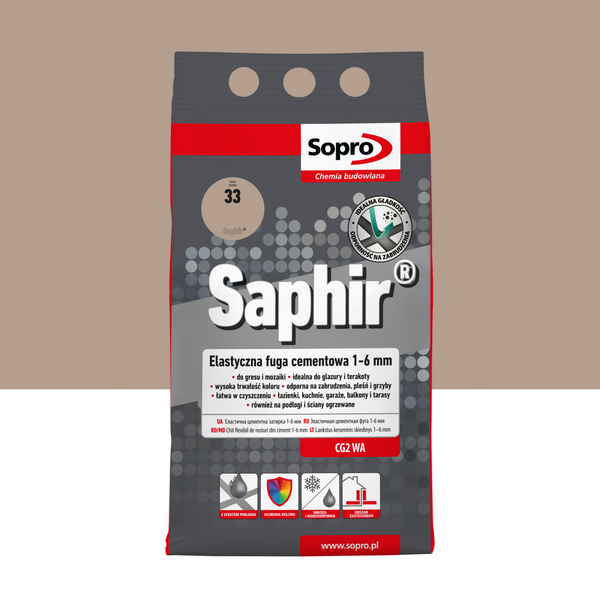 Cement elastyczny SOPRO 9512A_SAPHIR do fugowania 1-6mm, kolor Beż Jura, opakowanie 4kg