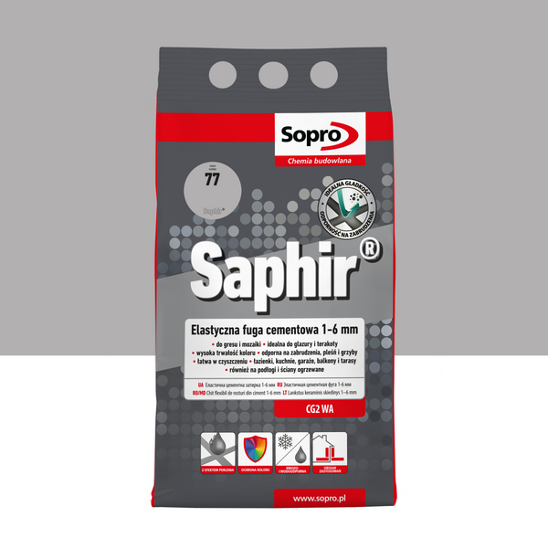 SOPRO 9513A_SAPHIR Elastyczna Fuga Cimentowa 1-6mm Manhatan 77 4kg - Idealna do zastosowań budowlanych i dekoracyjnych, zapewniająca trwałość i estetykę.