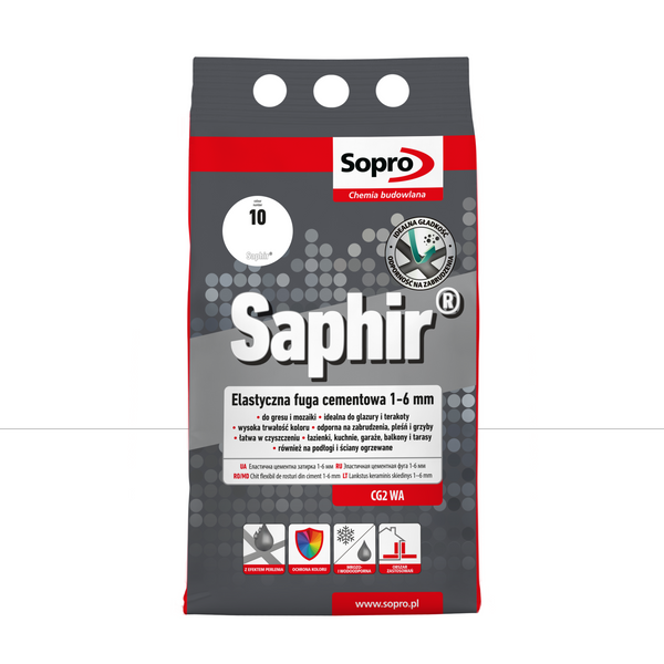 SOPRO Saphir Biały 10 20kg - Wysokiej Jakości Materiał Budowlany do Płytek i Fugi