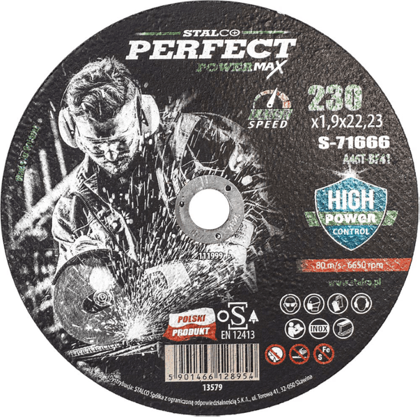 STALCO TARCZA METAL/PŁ.230x1,9 PERFECT POWERMAX S-71666 to wysokiej jakości tarcza przeznaczona do cięcia na sucho, idealna do pracy z różnymi materiałami metalowymi. Dzięki zastosowaniu nasypu cyrkonowego, tarcza zapewnia długotrwałą wydajność oraz precyzyjne cięcia.